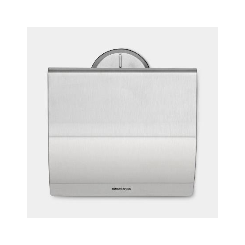 The toilet paper dispenser made of powder-coated stainless steel with viewing window for Gigant M and L rolls.