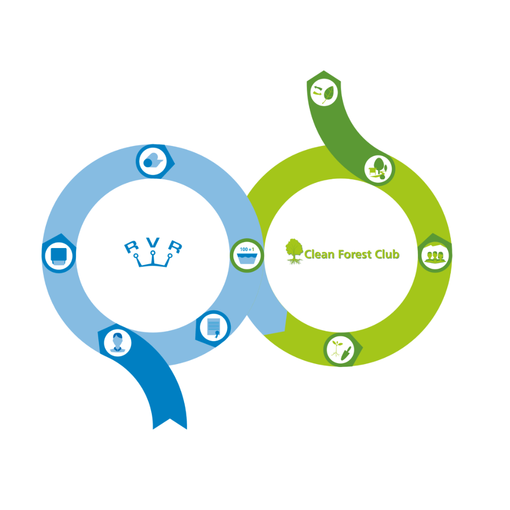Jede Stoffrollenwaschung trägt zu Baumpflanzungen bei. In Kooperation mit dem im 2007 gegründeten Verein Clean Forest Club wird die Aufforstung in sturmgeschädigten Gebieten ermöglicht. Seit 2004 bestätigt RVR die Waschungen und Baumpflanzungen ihrer Stoffrollenkunden regelmässig mittels Ökozertifikat.